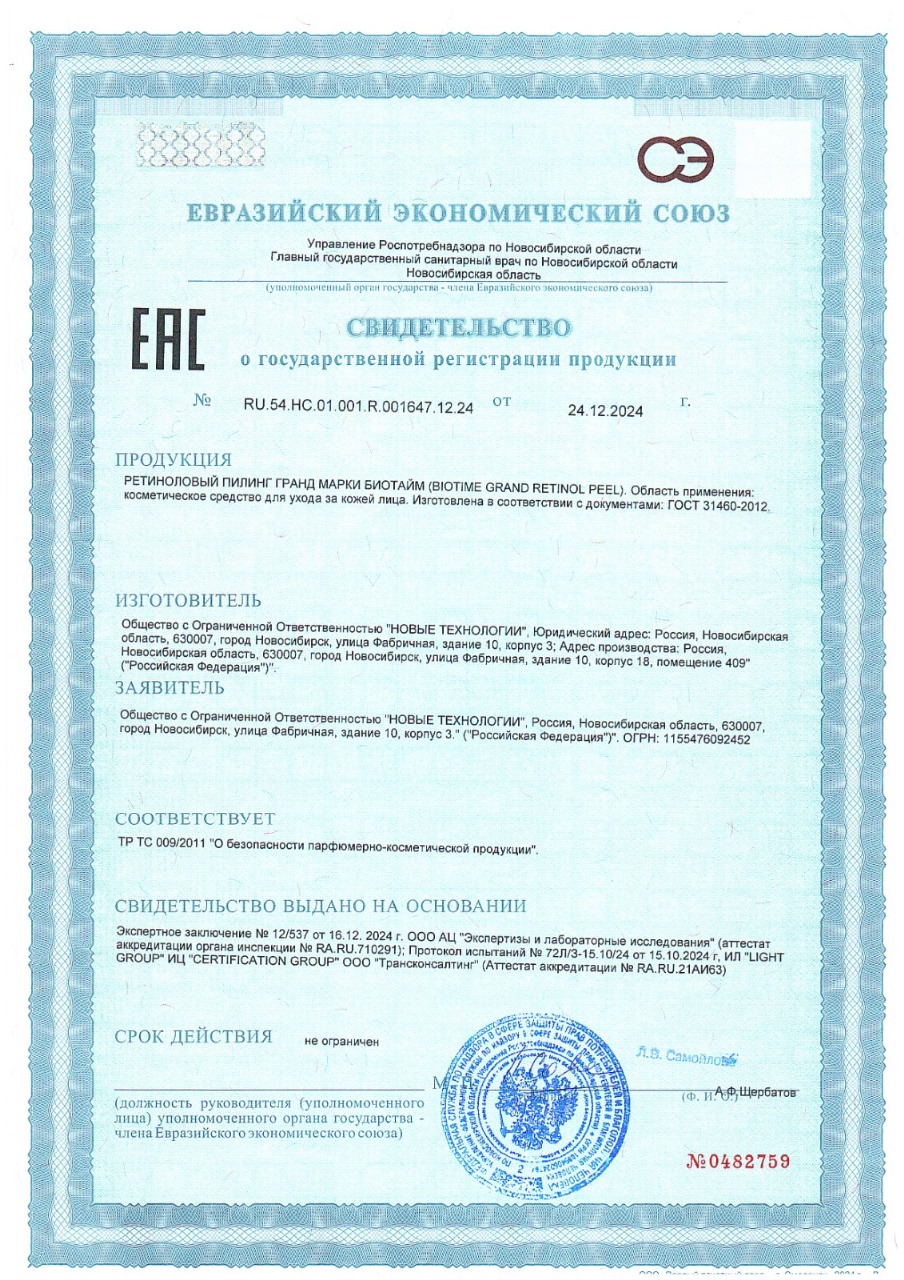 Состав: Гранд ретинол (липосомированная форма ретинола пиколината), липосомальный ретинил пальмитат, ретинол пиколинат, ретинол пальмитат, сквалан, витамин Е, ниацинамид, витамин С, глицерин.